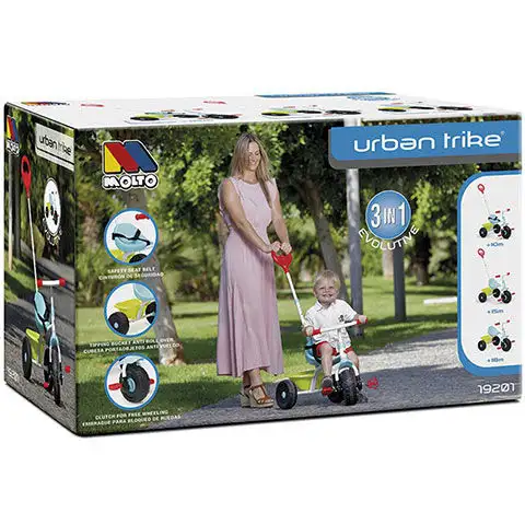 I ti nejmenší se mohou seznámit s radostí z jízdy na kole díky tomuto skvělému tříkolovému vozítku a to vše v naprostém bezpečí k velké radosti rodičů. Urban Trike tříkolka s veselými barvami a bezpečnou konstrukcí je určena pro věkovou kategorii od deseti měsíců. Na předním kole umístěný šlapací pedál je snadno použitelný, zatímco velké plastové sedadlo je pohodlné pro děti. O bezpečnost se stará bezpečnostní pás připevnitelný k sedadlu, stejně jako nastavitelná délka tlačné tyče.