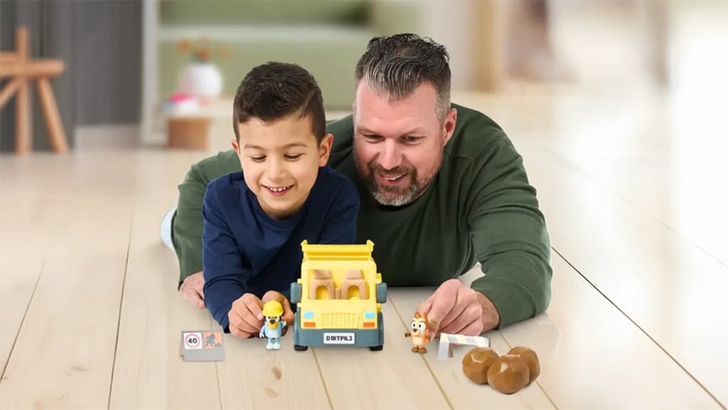 Tato hra rozvíjí prostorové povědomí a schopnost řešit problémy, protože děti mohou vymyslet, kde a jak chtějí umístit své kameny. Malí budou milovat, že mohou řídit svůj náklaďák, zatímco ho sami tlačí, tahají za páku, kdykoli chtějí, a nalepují na náklaďák tolik nálepek, kolik jen chtějí. Bluey a Bingo jsou tým a mohou sedět vedle sebe na sedadle řidiče a spolujezdce v náklaďáku, což je další skvělá lekce, kterou rodiče ocení, zatímco si malí hrají.