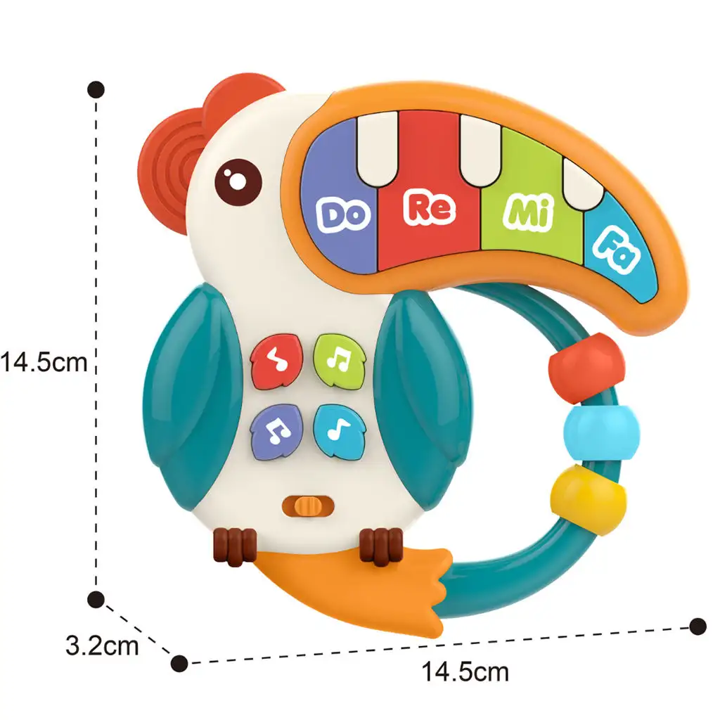 Design tukanova piana je velmi praktický a dětsky přívětivý. Díky kruhu mohou malí snadno vzít hračku do rukou a ovládat ji, takže si s ní mohou hrát samostatně, čímž rozvíjejí svou manuální zručnost a koordinační schopnosti.