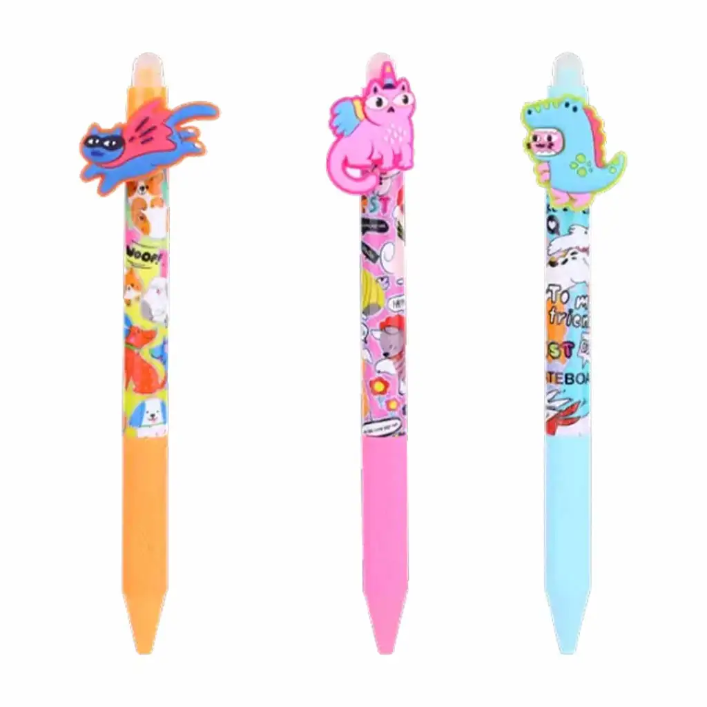 Pokud hledáte opravdu veselou a praktickou psací potřebu pro své dítě, je gelové pero s vyměnitelným nástavcem a gumovatelným inkoustem s motivem Koček v kostýmu tou nejlepší volbou! Tyto roztomilé pera mají speciální design – každé z nich zdobí vtipná figurka kočky v kostýmu, ať už je to superhrdinská kočka, kočičí jednorožec nebo kočka v dinosauřím kostýmu. Barevný a veselý vzhled si děti ihned oblíbí a rozhodně oživí jejich pouzdro na psací potřeby.