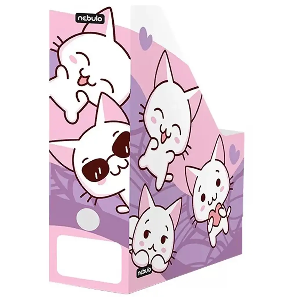 Kartonový pořadač na dokumenty Nebulo – Kočka není jen praktickým organizérem sešitů, kreslicích papírů a dokumentů, ale také opravdu roztomilým a veselým doplňkem do dětského pokoje nebo na školní polici. Přátelská, usmívající se kočičí grafika navozuje veselou náladu, takže se určitě stane oblíbeným doplňkem dětí a zároveň pomáhá udržet pořádek v potřebných školních papírech.