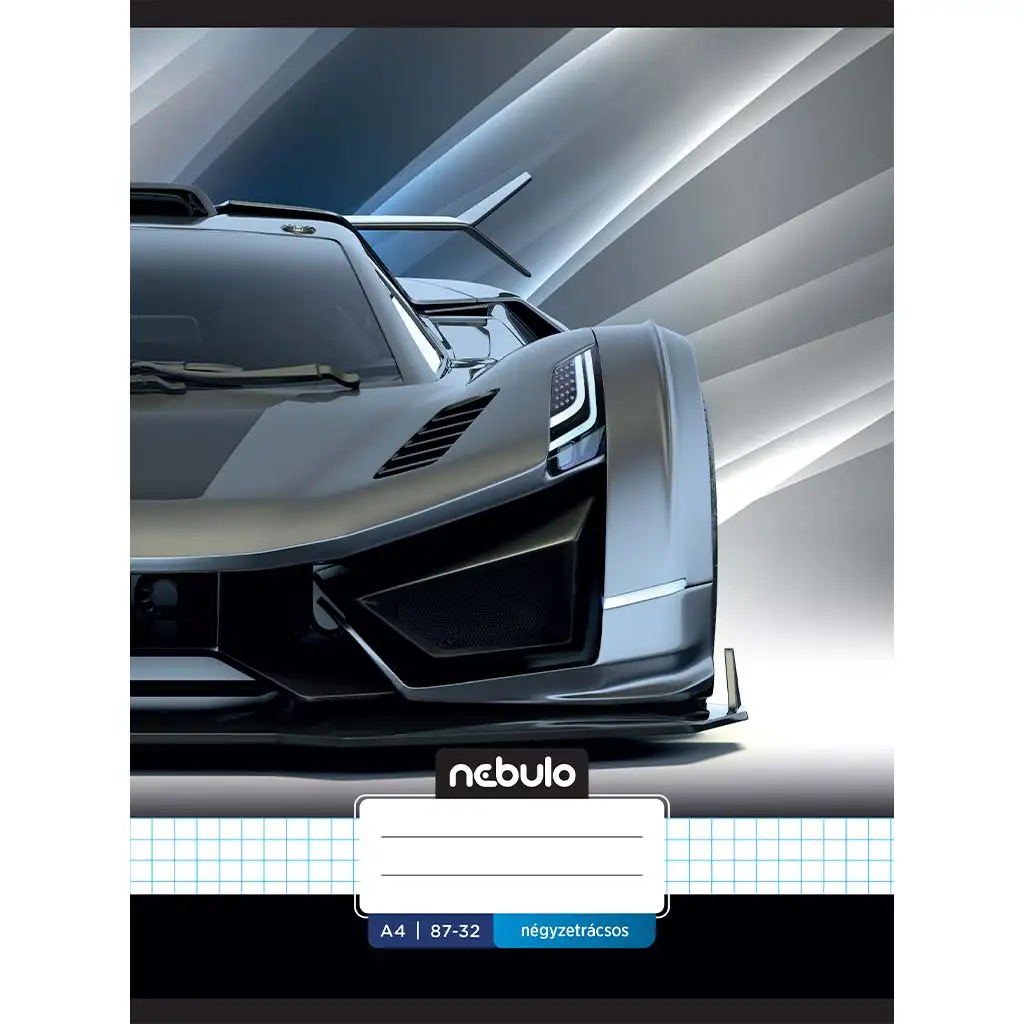 Nebulo: Sešit s motivem sportovního auta s kostkovaným vzorem, 87-32 A/4Nebulo: Sešit s motivem sportovního auta s kostkovaným vzorem, 87-32 A/4
