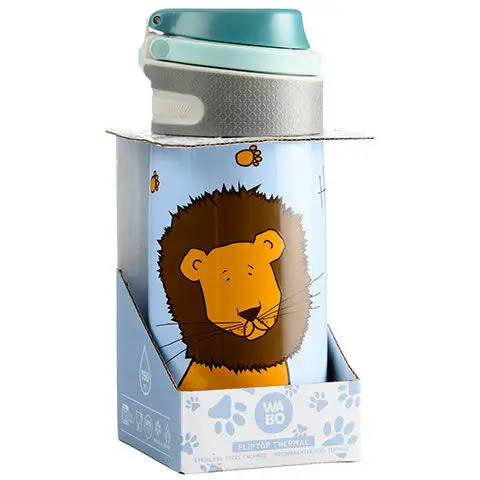 Tato stylová termoska bude skvělým společníkem pro děti jak v největším horku, tak v chladných dnech. Pod vnějškem s lvími motivy se skrývá dvojitě stěnová ocelová termoska, takže nápoj v ní dlouho udrží svou teplotu. Láhve Wabo jsou vyrobeny z nejkvalitnějších materiálů, takže všechny jejich produkty jsou zaručeně bez BPA a neobsahují škodlivé složky. Design s víčkem umožňuje jednoduché a hygienické otevření termosky, takže je skvělou volbou i pro sport. Láhev lze samozřejmě umýt v myčce na nádobí.
