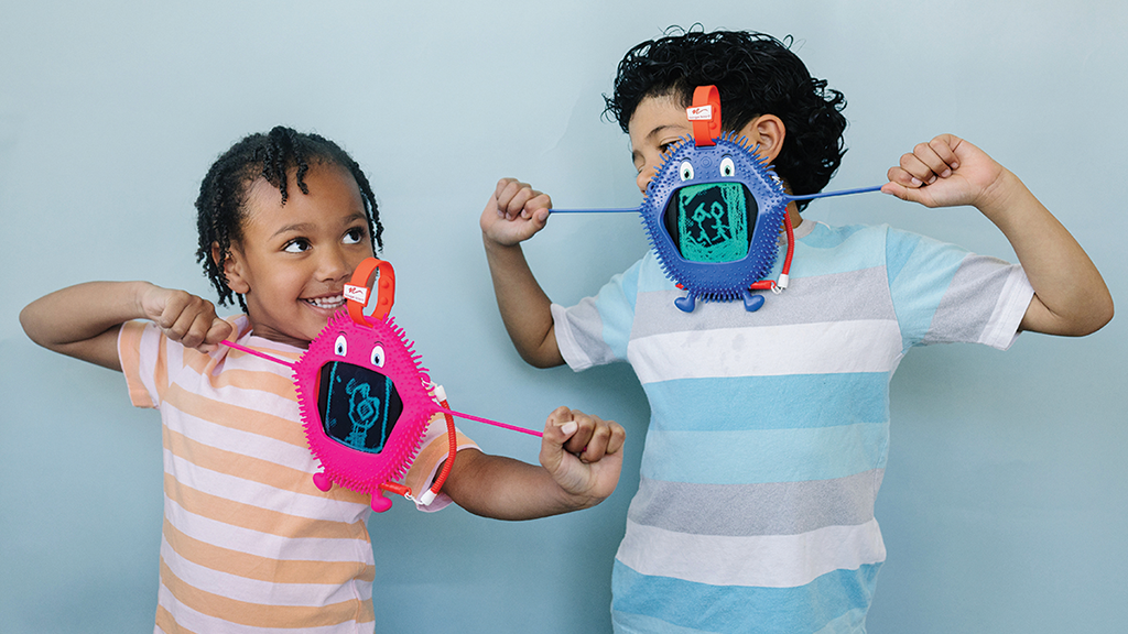 Kresli prsty nebo pomocí přiloženého stylusu, poté stiskni nos postavy, abys vymazal a začal znovu. Každý má za tabulí drážkovanou texturu, která poskytuje smyslový zážitek.