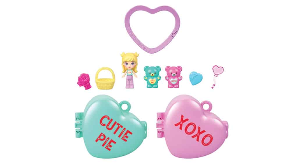 Buď můj! Polly Pocket a její milí přátelé, medvídci Sweethearts, se vydávají na sladké dobrodružství s touto herní sadou. Sada obsahuje dva kompakty inspirované Sweethearts, které po otevření odhalí malé, detailní světy. Děti si mohou srdíčka připevnit na klíčenku, takže si je mohou vzít kamkoli s sebou a užívat si hru i na cestách.
