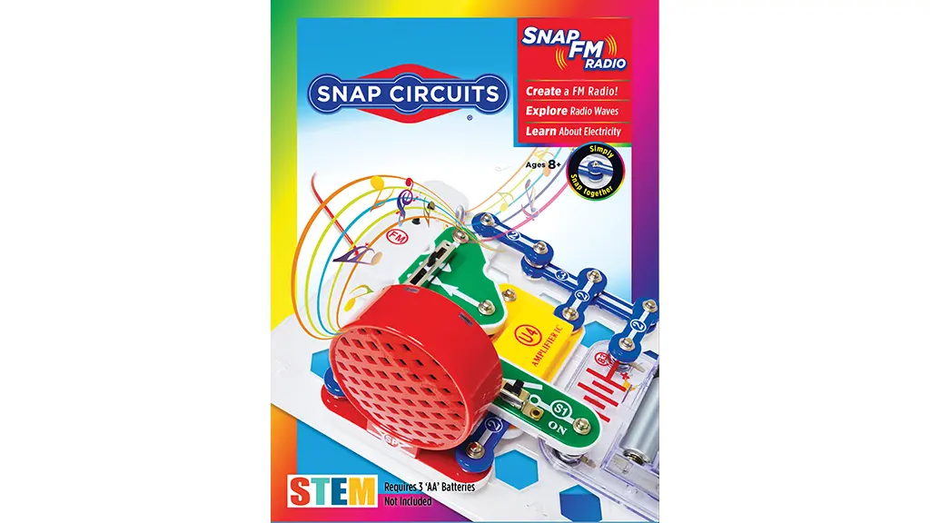 S tímto začátečnickým setem Snap Circuits se děti mohou zúčastnit čtyř praktických projektů, během kterých si postaví funkční FM rádio. V průběhu projektu se děti seznámí s rádiovými vlnami, zesilovači, obvody a vědou o elektřině.