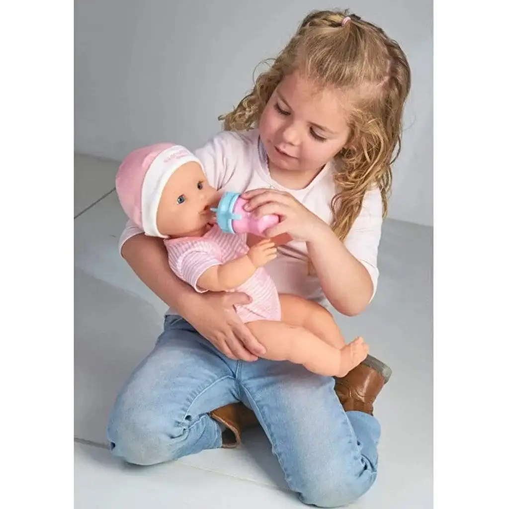 Mezi těmito doplňky tvé dítě najde čepici, plenku, láhev na pití, dudlík, misku, lžíci, kachničku na koupání a také zástěrku, se kterými může hrát všechny situace spojené s panenkami. Panenka má také různé funkce, například ji můžeš nakrmit a napojit, dokonce umí čůrat do plenky, což hru dělá ještě realističtější. Pokud se panence něco nelíbí nebo má bolesti břicha, dokáže plakat skutečnými slzami, což podněcuje děti k péči.