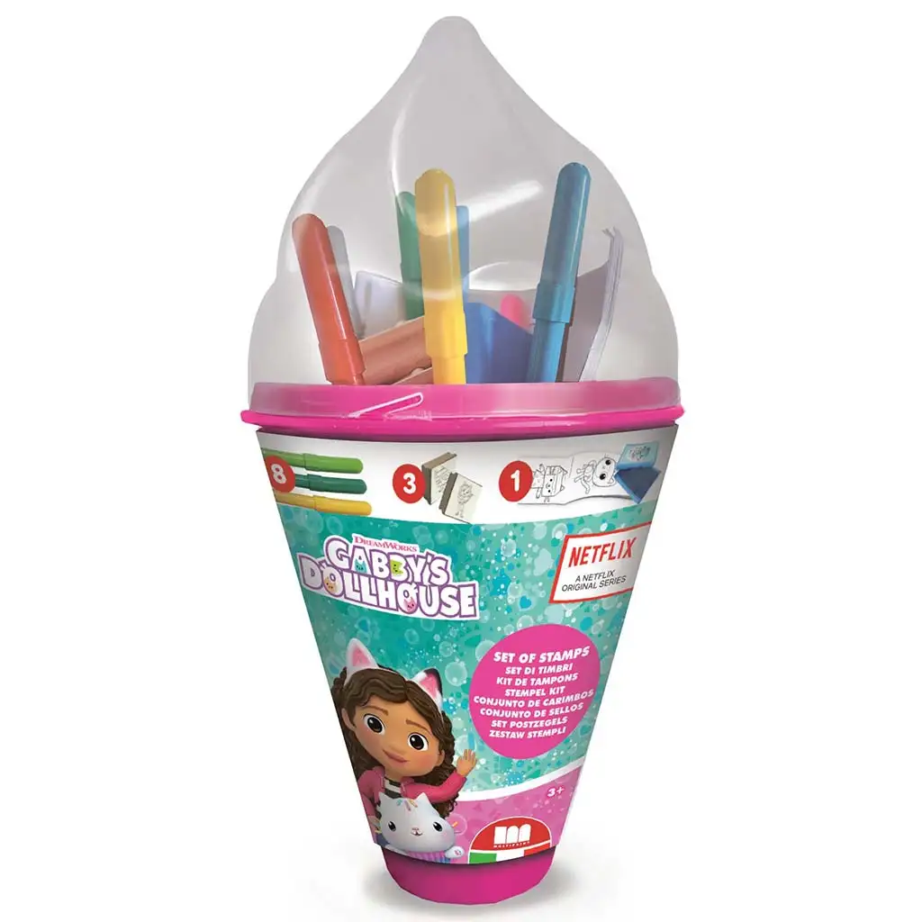 Gabiho domeček - sada razítek ve tvaru zmrzliny je opravdu výjimečná a zábavná kreativní sada, která potěší každého malého fanouška! Tato sada přináší kouzelný svět Gabiho domečku a její design je ještě atraktivnější, protože přichází v roztomilém úložném boxu ve tvaru zmrzliny, který si děti mohou snadno vzít kamkoli s sebou. Ideální volba pro dlouhé cestování nebo když si děti chtějí tvořit, protože všechny potřebné nástroje pro razítkování a barvení jsou na jednom místě.