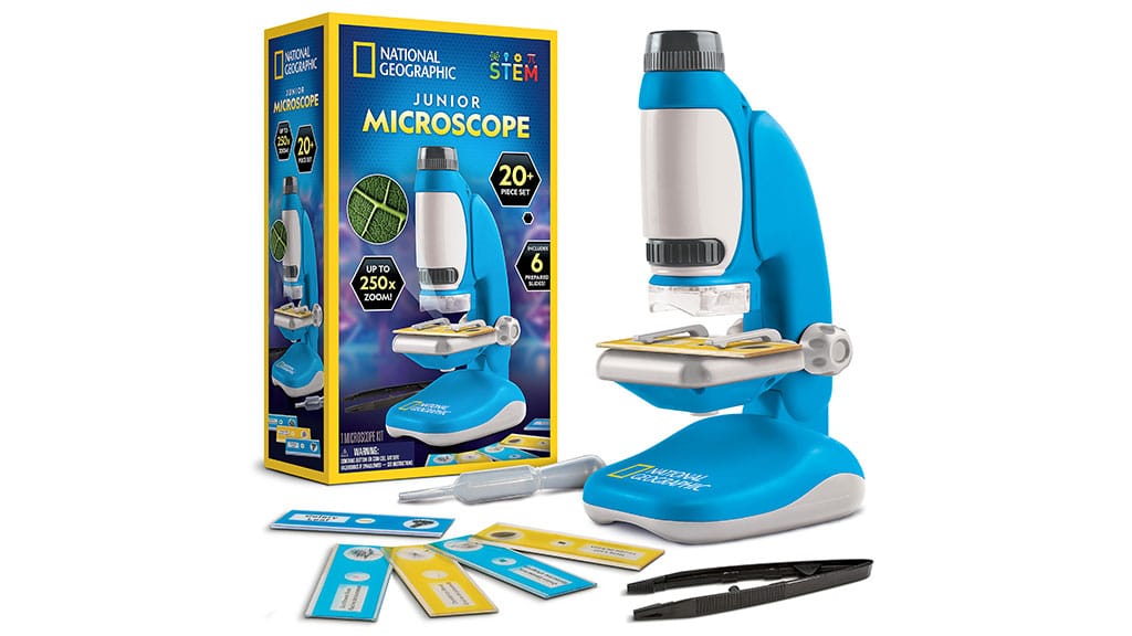 Tento mikroskop s 250násobným zvětšením, horním a spodním osvětlením a odnímatelným okulárem. Děti si mohou samy sbírat vzorky, nebo použít šest předem připravených rostlinných řezů, aby si zblízka prohlédly například pyl borovice, semínko pampelišky a mnoho dalších zajímavostí. Tento mikroskop je ideálním nástrojem pro objevování přírody a rozvíjení vědecké zvědavosti, zatímco se děti hravou formou učí o zázracích mikroskopického světa.
