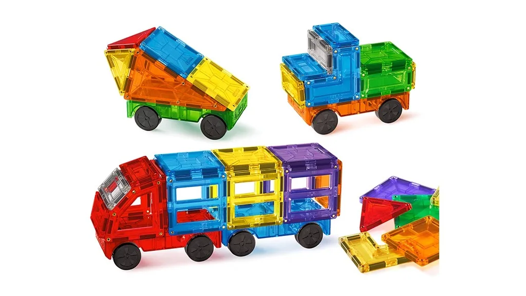 Tato sada obsahuje magnetické dlaždice, které mohou děti používat k stavbě různých vozidel. Obsahuje 50 kusů a 4 podvozky, vše v 7 průhledných barvách.Pro děti, které jsou nadšené silou magnetů, sada Magnetic Wonder Tiles – Vehicle Builder obsahuje plastové dlaždice, které jsou na všech stranách vybaveny magnety. Děti mohou vytvářet nákladní auta, vysokozdvižné vozíky a mnoho dalších vozidel, která se všechna hladce pohybují díky magnetickému podvozku.