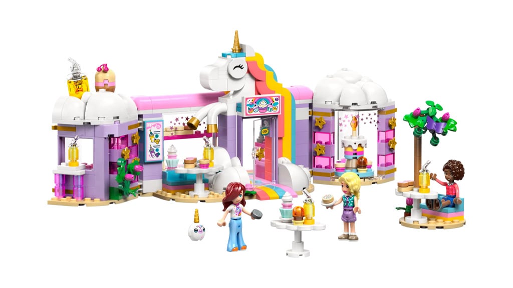 I ti nejmenší si mohou postavit LEGO Friends Jednorožčí kavárnu snů. Tato stavebnice obsahuje 475 dílků, tři minifigurky, džusový a smoothie bar, doplňky s motivem jednorožce, otočný stojan na cupcakes a mnoho dalších vzrušujících prvků. Barevné a kreativní části sady pomáhají rozvíjet představivost a zručnost dětí, přičemž poskytují hodiny zábavy. Jednorožčí motivy a detailní doplňky činí tuto stavebnici obzvláště atraktivní pro všechny malé stavitele.