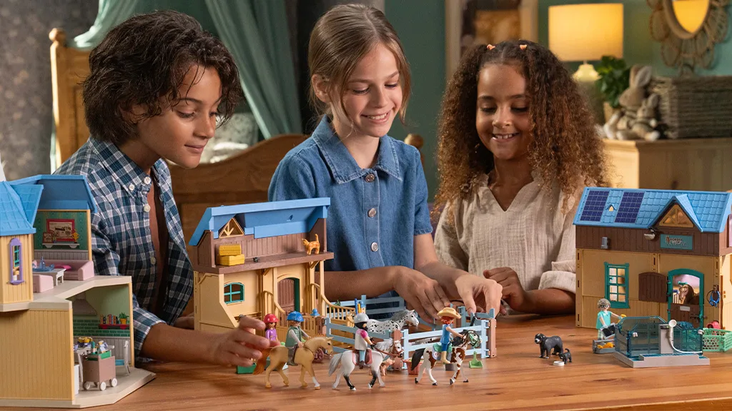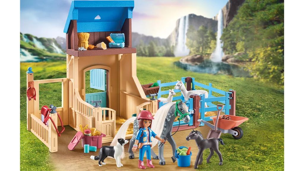 Vyskoč do sedla a připrav se na imaginární cestu s kouzelnou sadou Playmobil Vodopádová Jezdecká Farma. Děti se mohou připojit k Isabelle, Zoé, Benovi, Amélii, Ellie a jejich hříbatům a klisnám v nekonečných dobrodružstvích rolí. Od obrovské, 264 dílkové sady Vodopádová Jezdecká Farma až po Jezdeckou Terapii a Veterinární Praxi, děti mohou prozkoumat všechna vzrušení farmářského života.