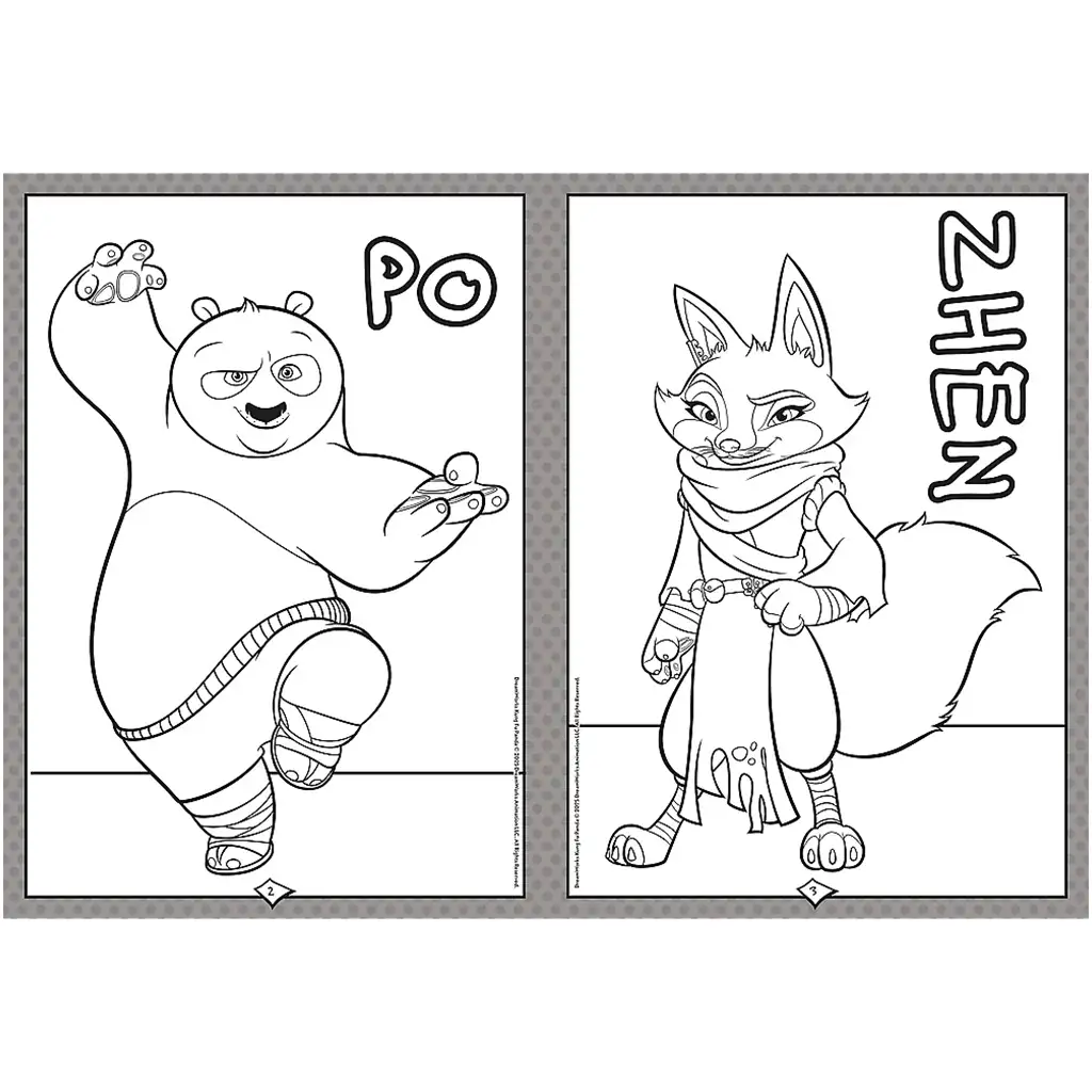 Omalovánka s motivem Kung Fu Panda 4 s Poem a Zhenem