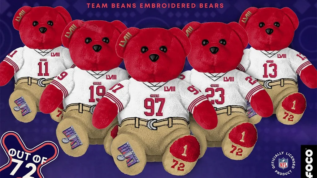 Sbírej oficiálně povolené medvídky na Super Bowl 58! Vyber si z medvídků inspirovaných nejlepšími hráči týmů San Francisco 49ers a Kansas City Chiefs.