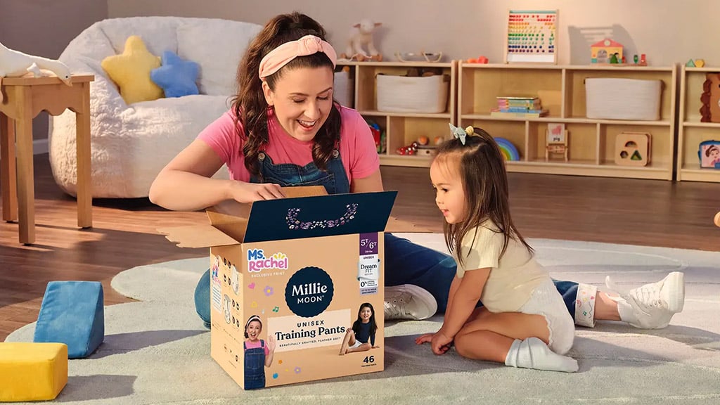 Ms. Rachel videa pomohla rodinám po celém světě překonat výzvy spojené s nácvikem čistoty. Nyní oblíbená učitelka fanoušků spolupracuje se značkou Millie Moon na vytvoření nové kolekce tréninkových plenkových kalhotek, takže Ms. Rachel může být s malými dětmi na každém kroku jejich cesty k samostatnosti na toaletě.