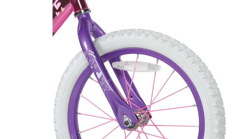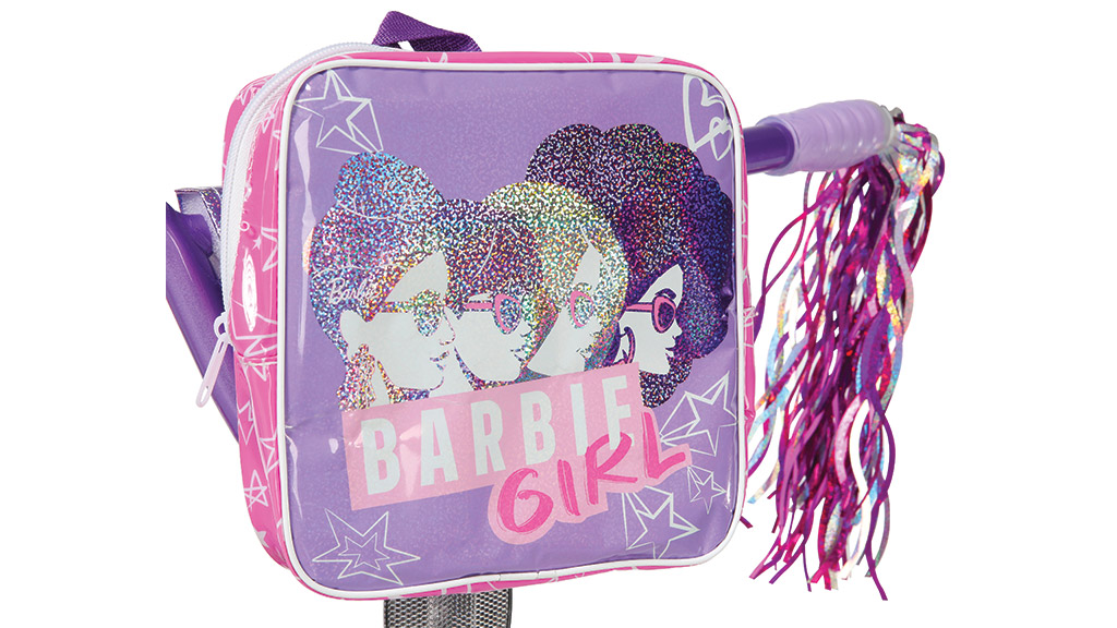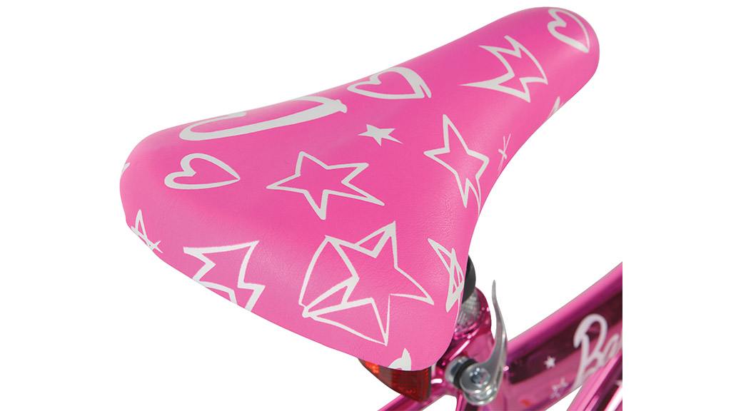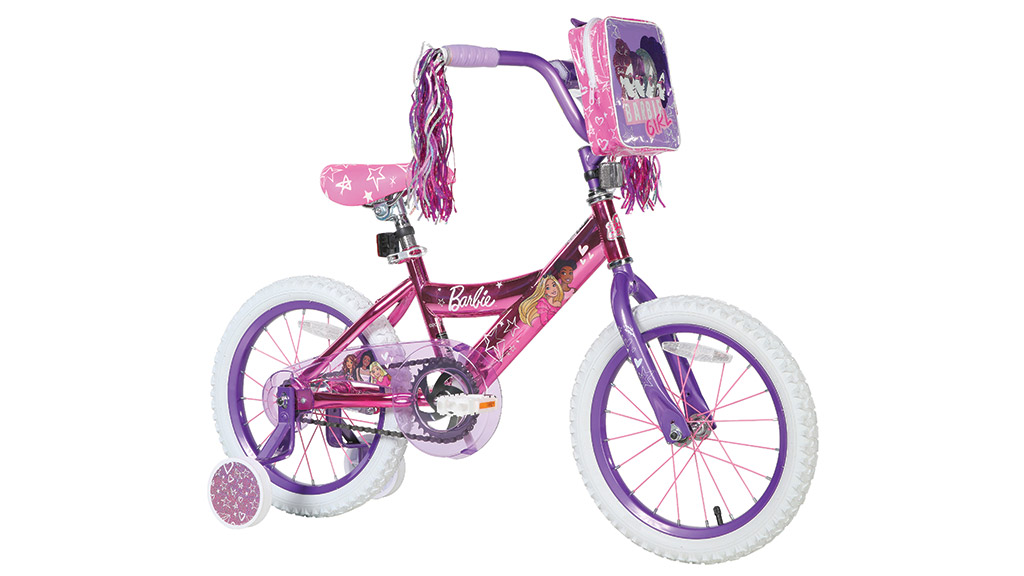 16palcové dětské kolo Barbie je barevné vozidlo, které bylo navrženo jako první kolo pro děti. Září v živé Barbie růžové a fialové barvě a je ozdobeno grafikami zobrazujícími Barbie a její přátele. Navíc je vybaveno odnímatelným batůžkem.