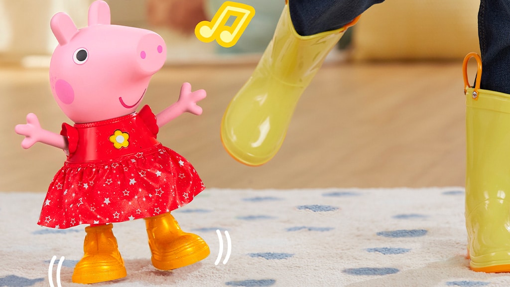 Tato interaktivní Peppa Pig od Hasbro povzbuzuje děti, aby si hrály společně a užívaly si taneční večírky, hry a mnoho dalšího. S více než 55 zvuky, výrazy a reakcemi mohou děti individuálně komunikovat s Peppou.