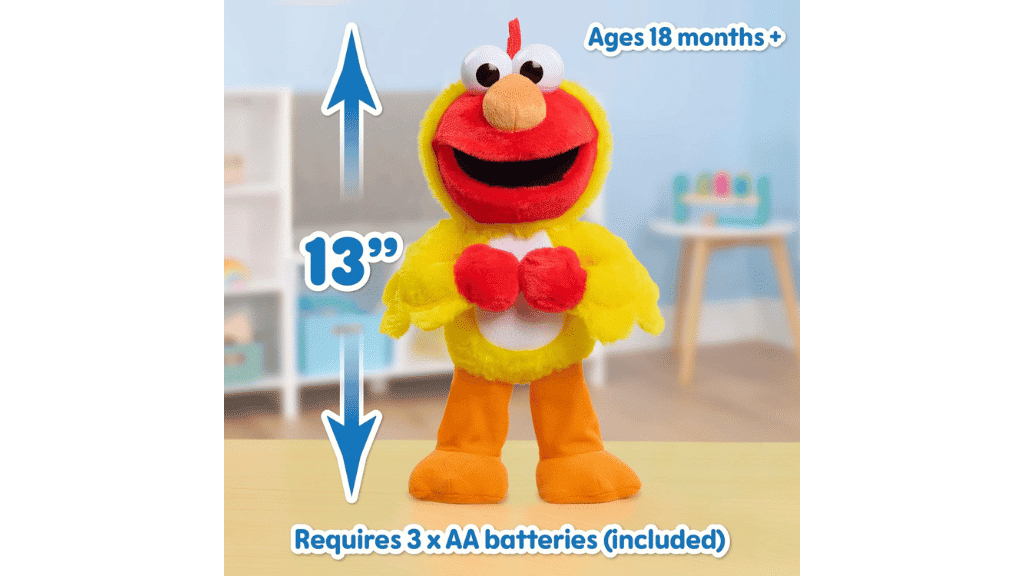Interaktivní plyšák Elmo z ulice Sezam od Just Play je vzrušující interaktivní hračka, která přináší pohyb a radost do života fanoušků Elma. Děti mohou stisknout Elmovu nohu, aby aktivovaly jeden ze dvou herních režimů: taneční režim nebo režim vtipů. V tanečním režimu Elmo tančí a zpívá píseň kuřecího tance; v režimu vtipů vypráví vtipy a povzbuzuje děti, aby si s ním hrály.