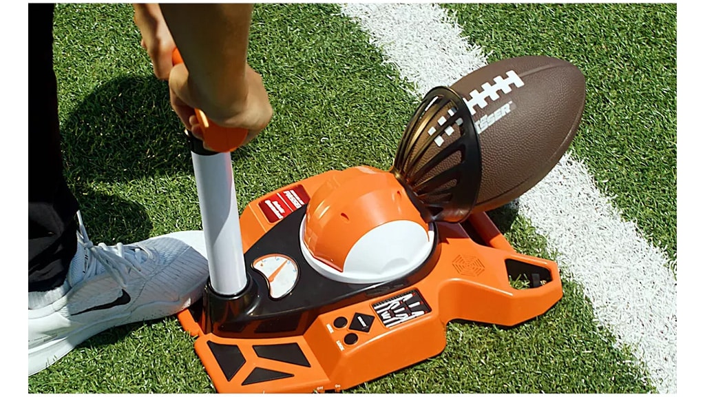 Nikdo jiný není poblíž, aby chytil míč? Žádný problém. Tento robotický ovladač dokáže hodit míč na vzdálenost více než 35 yardů a má devět přihrávkových zón. Ideální řešení, pokud chcete trénovat nebo se bavit sami.