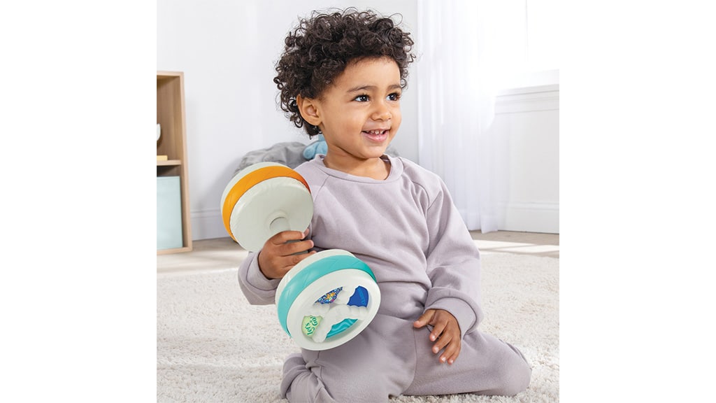 Produktová řada Bebé Fuerte podporuje pohyb, dosažení raných milníků a učení dvou jazyků. Otočením činky na druhou stranu lze rychle přepnout jazyk z angličtiny na španělštinu. Na čince jsou tři jednoduché přepínače: zapnutí a vypnutí, tři režimy a nižší hlasitost.