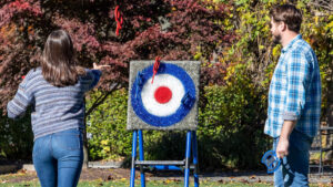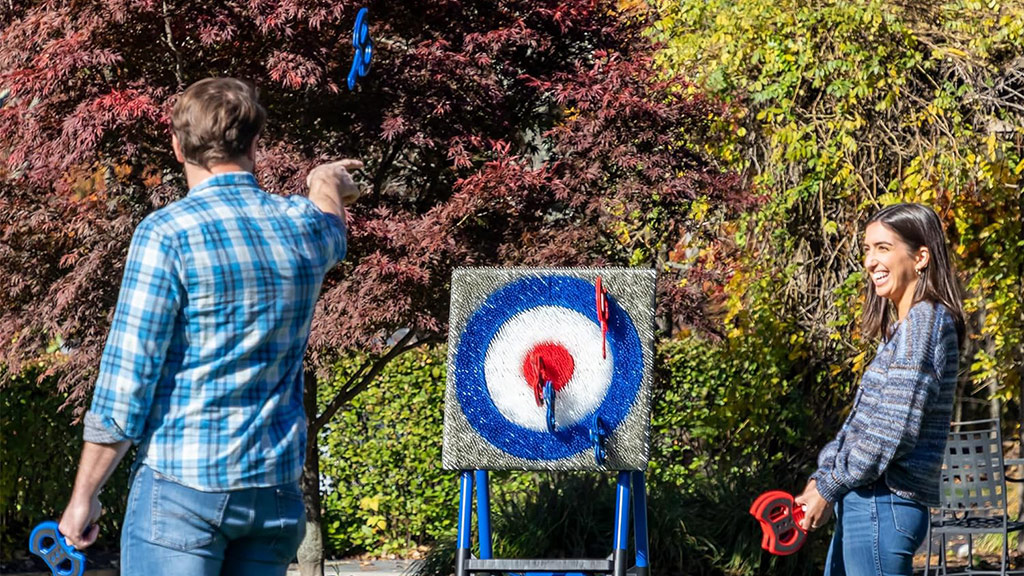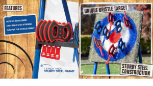 Herní divize Buffalo Games EastPoint Sports vytvořila přenosnou hru na házení sekerou, která činí tuto lesní zábavu bezpečnější.Toto přichází s masivním ocelovým stojanem, který je více než 5 stop vysoký, s cílem vyrobeným z odolných plastových štětin a 8 bezpečnými sekerami vyrobenými z plastu a pěny.Všechno, co je potřeba pro bezpečnou hru, najdete v krabici! | Zdroj: EastPoint SportsTato hra je ideální pro celou rodinu! Zdroj: EastPoint SportsTým **EastPoint Sports** v posledních několika letech ohromil publikum fantastickými **obřími hrami**, které povýšily rodinnou zábavu na zcela novou úroveň. Po **Skee-Ballu**, **Connect4** a **Corn Hole** (americká výroba!) jsme netrpělivě očekávali, že se do naší rodinné sbírky her přidá i **Premium Axe Throw Target Game**.Po sestavení je **masivnost** této sady zřejmá, protože má skutečně určitou váhu. Tato **síla** a **odolnost** jsou důležité, protože členové rodiny střídavě házejí bezpečnostní sekery na cíl. Máme ji už několik měsíců a přežila mnoho intenzivních bitev.Děti i dospělé přitahuje návyková jednoduchost hry a výzva, aby každým hodem dosáhli dokonalého zásahu prostřednictvím cvičení a opakovaného hraní. Během hry mohou hráči neustále zlepšovat své dovednosti a dosahovat stále lepších výsledků, což činí herní zážitek ještě vzrušujícím. Díky jednoduchým pravidlům a snadno pochopitelné mechanice se může kdokoli snadno zapojit a užívat si hru. Společenský zážitek a možnost soutěžení dále zvyšují přitažlivost hry, protože hraní s přáteli a rodinnými příslušníky činí trávení času ještě zábavnějším.Kompaktní, skládací design umožňuje snadné ukrytí za dveřmi, pod postelí nebo přepravu v kufru crossoveru nebo SUV. Toto praktické řešení je ideální pro ty, kteří dbají na **využití prostoru** a **mobilitu**.K první montáži si vyhraďte alespoň 30 minut. Je to úkol, který je nejlepší provádět ve dvou lidech. I když jsou osy lehké, doporučuje se venkovní použití, protože při použití uvnitř mohou poškodit stěny nebo jiné vybavení.Je důležité, aby **bezpečnost** byla vždy zajištěna správným upevněním součástek a kontrolou, zda je vše stabilní. Při **venkovním** použití dbejte na dostatek prostoru pro pohyb a na to, aby v blízkosti nebyly křehké předměty. Při **montáži** postupujte přesně podle kroků, abyste předešli chybám a nehodám.Rodiny, které si chtějí zpestřit volný čas novou hrou, kterou si mohou užít na zahradě, v parku nebo na pláži!Popadni svou **bezpečnostní sekeru**, zaměř se na cíl a pokus se trefit střed! Tento **masivní cíl pro házení sekerou** lze postavit na trávě, písku nebo asfaltu a je ideální pro hraní na pláži, v parku nebo na zahradě. **SILNÝ OCELOVÝ RÁM**: Rám cíle je více než 5 stop vysoký a...