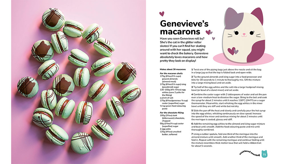 Squishmallows: Oficiální kuchařka obsahuje 50 receptů inspirovaných Squishmallows, které mohou děti připravovat společně s rodiči. Mezi recepty najdete pečivo, dorty, sušenky, cukrovinky a nápoje, které může celá rodina připravovat po celý rok. Kniha je neodolatelná díky lákavým fotografiím všech receptů, které dětem rozproudí sliny v ústech. Mezi vynikající recepty patří Camovy tříbarevné těstové sušenky, Hansovy čokoládové lanýže s posypem, Lesediho skořicové šneky, Bethanyho srdíčkové sušenky Linzer, Macovy dýňové kořeněné whoopie koláčky a mnoho dalších!