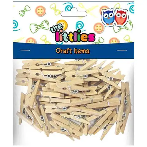 Tyto malé dřevěné kolíčky jsou skvěle použitelné při kreativních hrách, kde je mohou děti využívat jako dekorace na svých výtvorech. Kolíčky jsou plně funkční a díky své malé velikosti jsou velmi univerzálně použitelné. Balení obsahuje 45 kolíčků, každý z nich je přírodní barvy a vybavený kovovou pružinou. Děti je mohou používat doma nebo během školních hodin při kreativním tvoření!