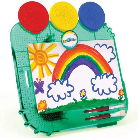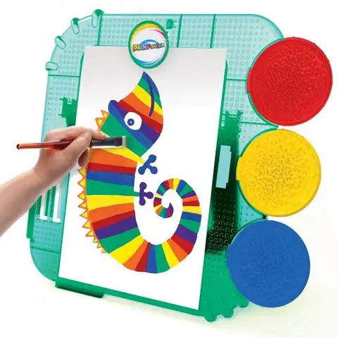 Na stolní malířské stanici má každý nástroj potřebný pro tvorbu své praktické místo. Malování je jednoduché, bez vody a kapání s třemi kusy malířských houbiček, takže se nemusíte bát, že vše bude zamazané. Papír na stojanu lze snadno vyměnit, takže děti mohou samy začít s tvorbou nových děl. Před použitím, stejně jako při změně barev, je vhodné štětec opláchnout ve vodě a osušit. K barvám by se neměla přidávat voda, protože by se jejich konzistence stala tekutou. Když se nepoužívají, je nutné vrátit víčka na palety, aby se předešlo vysychání. Během malování se rozvíjí představivost, experimentální duch, estetické cítění, jemná motorika, koordinace oko-ruka a koncentrace.
