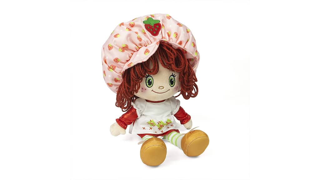 Toto je 35centimetrová, měkká plyšová panenka Strawberry Shortcake s vyšívaným obličejem, copánkovými vlasy z příze, šaty z třpytivého a lesklého materiálu, hedvábným kloboukem a zlatými botami se srdíčkovou ozdobou. Mazlivá Hračky pro holky šíří sladkou jahodovou vůni, takže dětem poskytuje ještě výjimečnější zážitek. Detailní zpracování a kvalitní materiály zaručují, že panenka Strawberry Shortcake zůstane oblíbenou hračkou na dlouhou dobu.