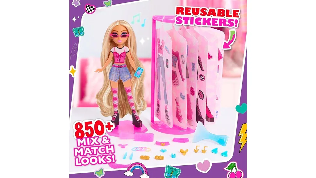 Každá plochá panenka přichází s několika znovu použitelnými nálepkami na oblečení. Tyto šaty visí jako nálepky ve skříni, která je součástí balení, takže děti mohou snadno procházet. Každý z šesti archů nálepek obsahuje kompletní oblečení (vrchní díl, spodní díl, doplňky a boty), ale děti mohou díly libovolně kombinovat, čímž vytvoří nespočet kombinací. Nálepky lze snadno odlepovat a přilepovat, ale mladší děti mohou potřebovat trochu pomoci. Sada obsahuje také nástroj, který usnadňuje odlepování a přilepování oblečení!