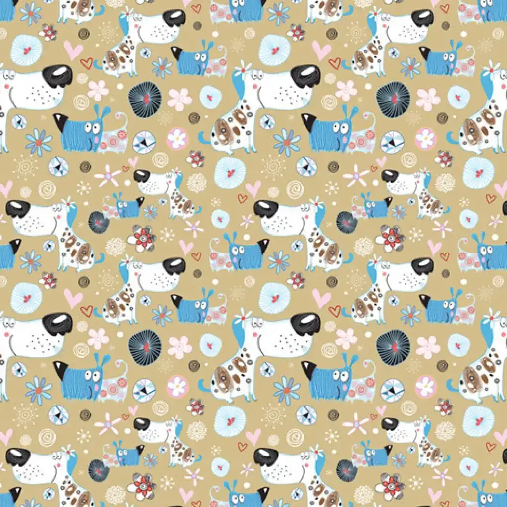 Pastelově barevný balicí papír s pejsky 100x70 cmPastelově barevný balicí papír s pejsky 100x70 cm