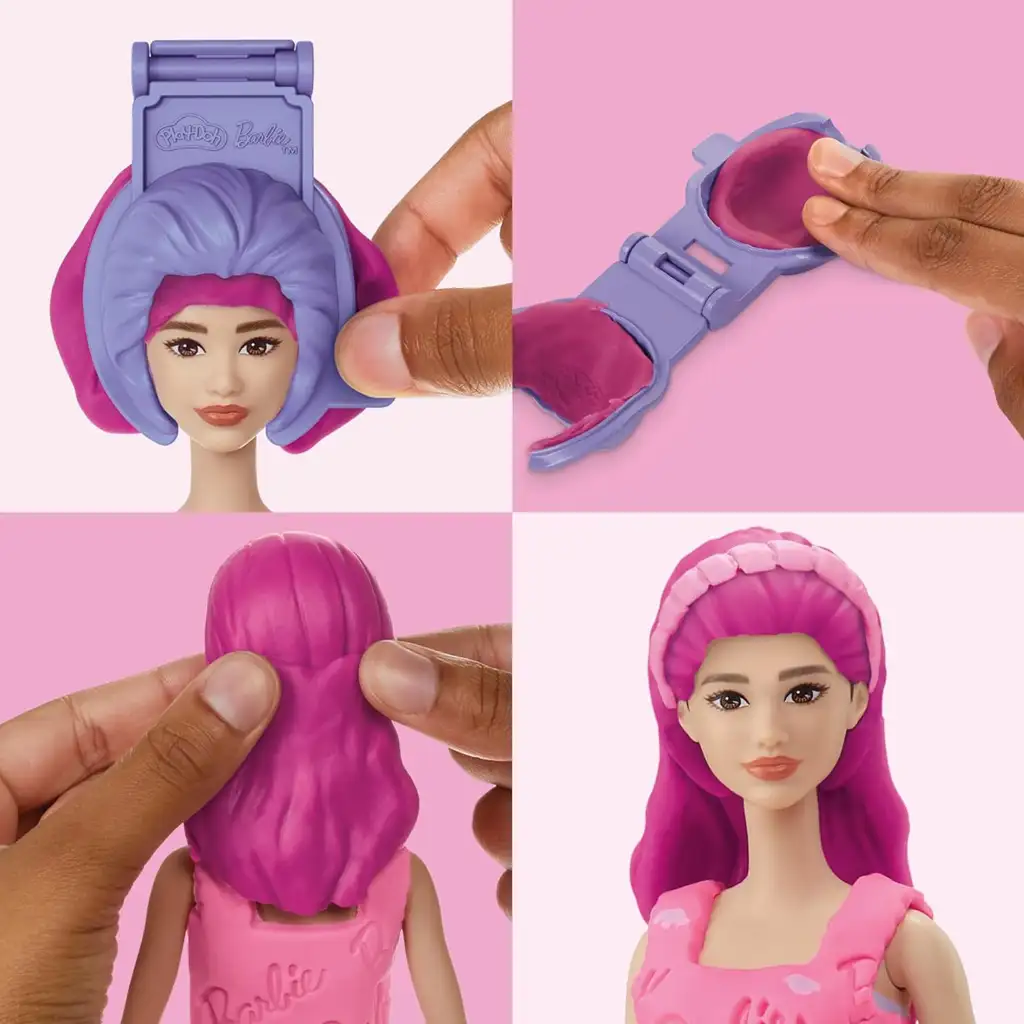 Při hře mohou děti Barbie jednoduše postavit na stojan a pomocí přiložené vzorované Play-Doh podložky a formiček si vytvořit své vlastní srdíčkové kousky oblečení. Z růžové a fialové plastelíny mohou vytvářet mašle, ozdoby nebo dokonce celé oblečení, a samozřejmě nesmí chybět detaily s logem Barbie.