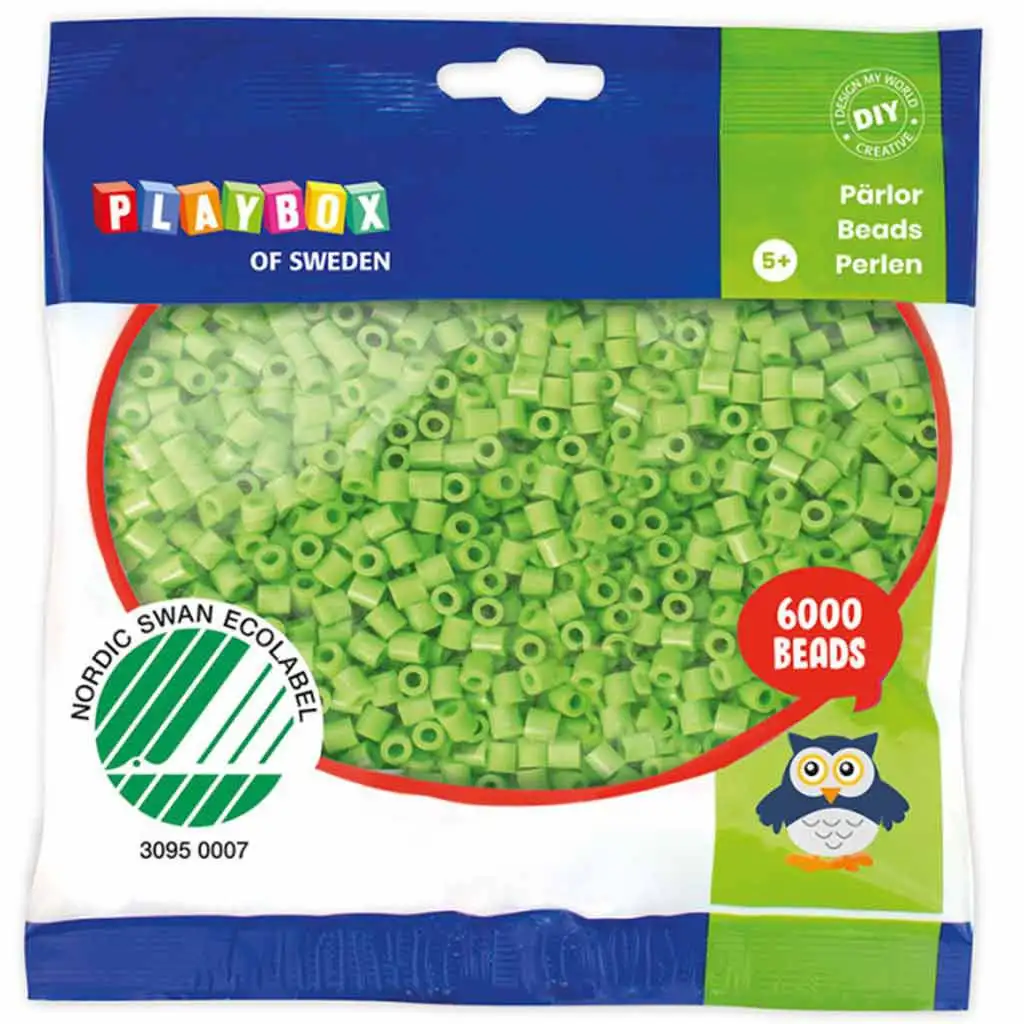 Korálky jsou vyrobeny z vysoce kvalitního, netoxického materiálu, jsou bezpečné pro děti a hrdě nesou certifikát Nordic Swan Ecolabel, který zaručuje, že produkty byly vyrobeny ekologicky. Světle zelená barva je ideální pro jakýkoli projekt, kde hraje důležitou roli svěžest a přirozenost.