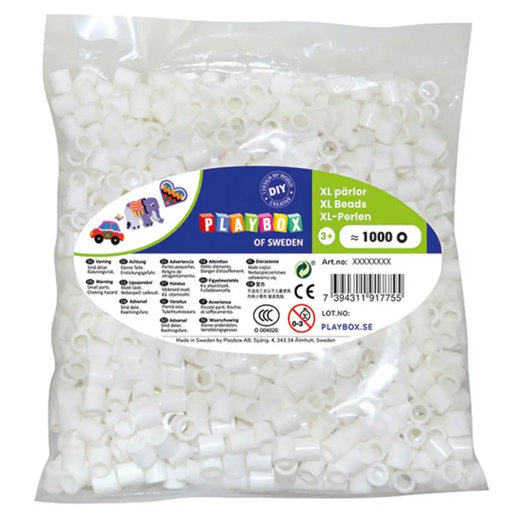 PlayBox: 9mm XL MAXI zažehlovací korálky, balení 1000 ks, bílá barva