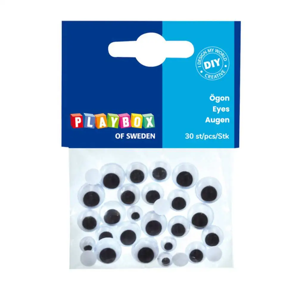 PlayBox: Černobílé pohyblivé oči s řasami v různých velikostech, 30 ks.PlayBox: Černobílé pohyblivé oči s řasami v různých velikostech, 30 ks.
