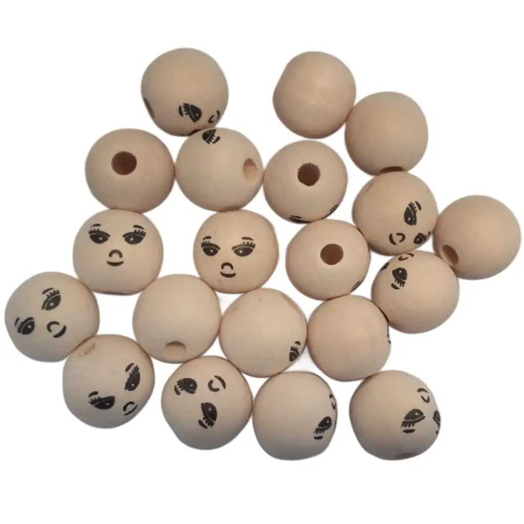 PlayBox: Dřevěné kuličky s různými tvářemi, průměr 22 mm, 20 ks