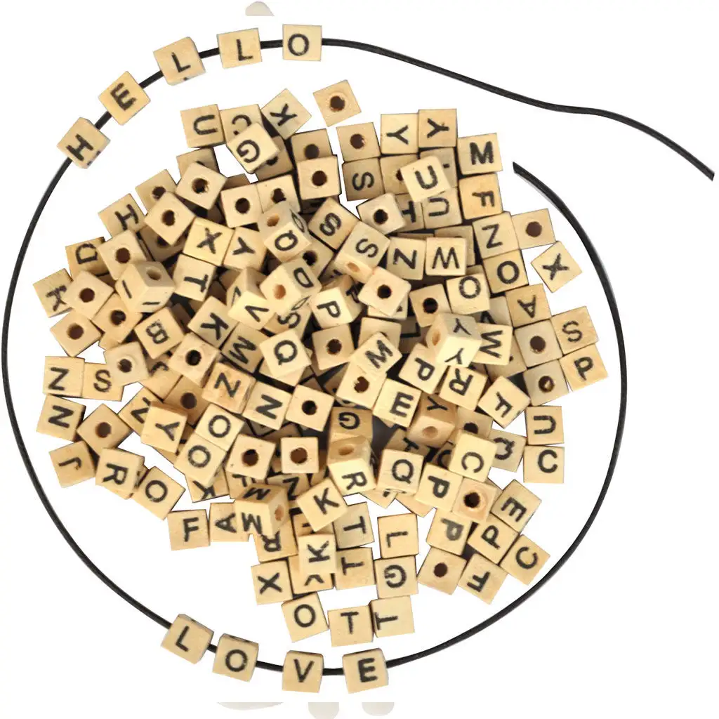 PlayBox: Přírodní dřevěné vařitelné kostky s písmeny o velikosti 7x7 mm, balení 300 kusů. hodnocení:
