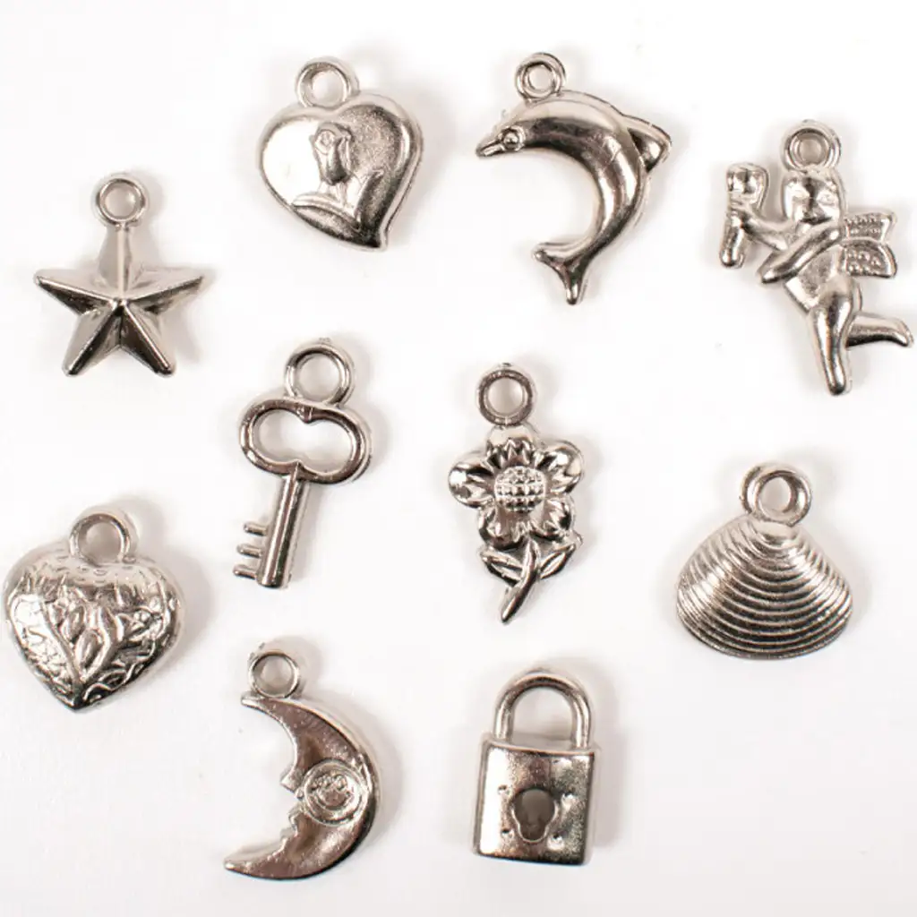 Různé tvary – například klíč, hvězda, srdce, delfín, měsíc nebo květina – umožňují, aby každé dílo bylo jedinečné a osobní. Ať už chcete vyrábět přátelské náramky, náhrdelníky pro štěstí, nebo vlastní navržené šperky, tyto přívěsky poskytují skvělý materiál.