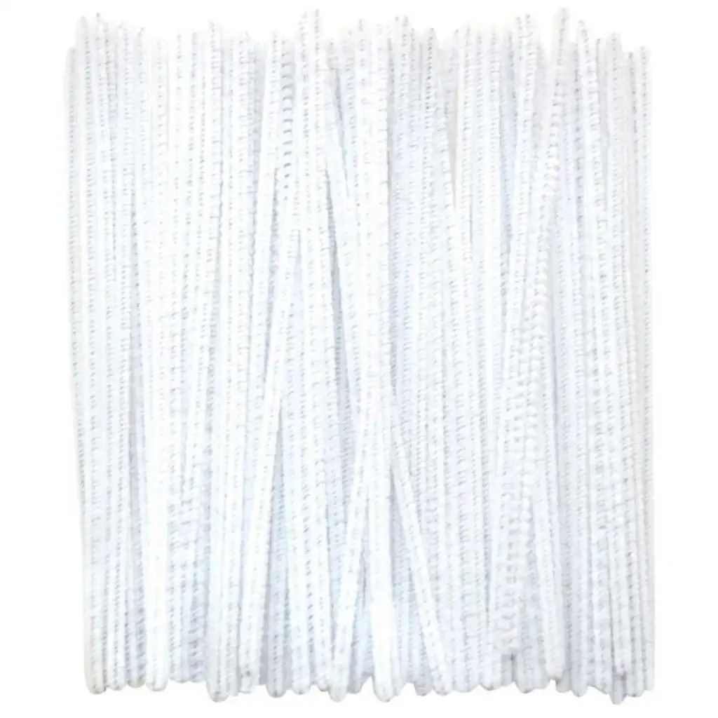 Tato sada 100 bílých žinylkových drátků je ideální volbou pro všechny řemeslné a kreativní projekty. Žinylkové drátky jsou měkké na dotek, ale přesto pružné, takže je lze snadno tvarovat do různých tvarů a postaviček. Můžete je použít k dekoraci, výrobě loutek, věnců nebo k vytváření různých textur. Bílá barva je všestranně použitelná, poskytuje skvělý základ pro různé barevné ozdoby nebo sama o sobě zajišťuje elegantní a čistý vzhled hotového díla. Tyto žinylkové drátky jsou také skvělé pro děti, aby si zábavnou formou rozvíjely své dovednosti a kreativitu.