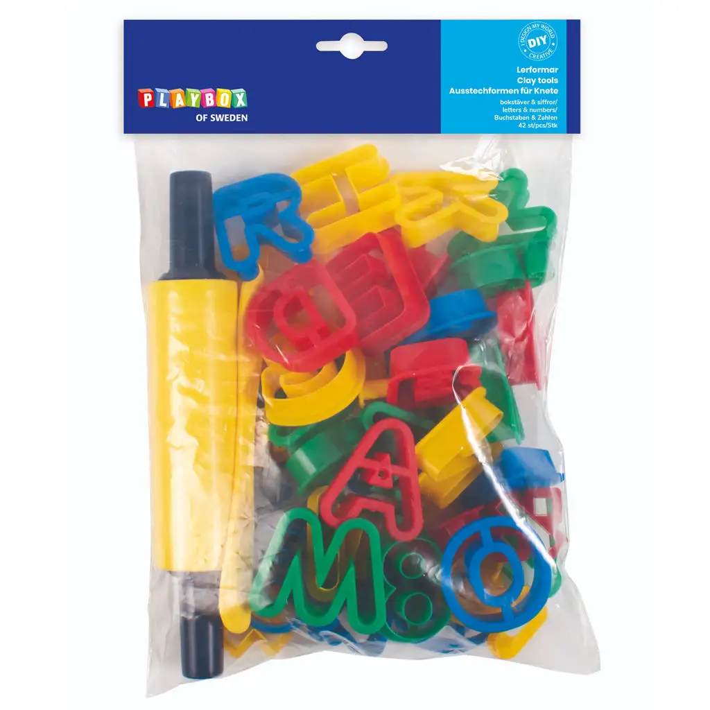PlayBox: Sada na modelování z plastelíny s vykrajovacími formičkami a válečkem, 42 kusů.