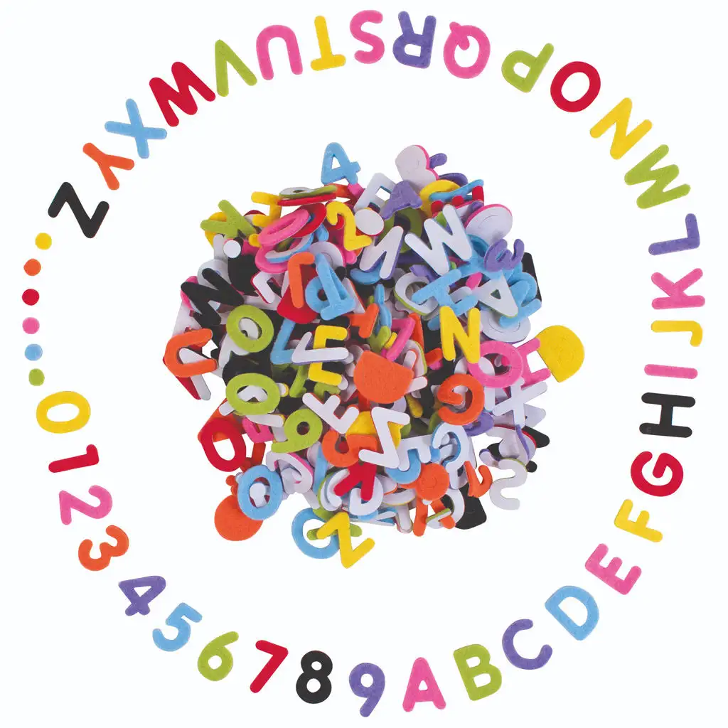 PlayBox: Samolepící filcová písmena a čísla, sada 500 kusů.