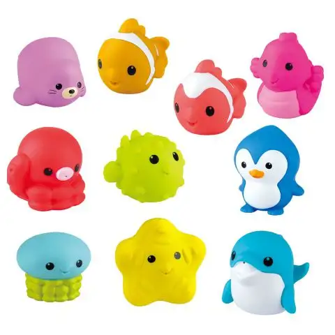 Tyto roztomilé koupací zvířátka pro děti udělají z koupání obrovskou zábavu. Každé veselé zvířátko stříká, když ho naplníme vodou. V sadě je celkem 10 barevných vodních zvířátek, takže děti se mohou setkat s tučňákem, chobotnicí, medúzou, 2 klaunskými rybami, delfínem, tuleněm, mořskou hvězdou, pruhovanou rybou a rybou fugu. Sada přichází v praktické válcové úložné krabici.