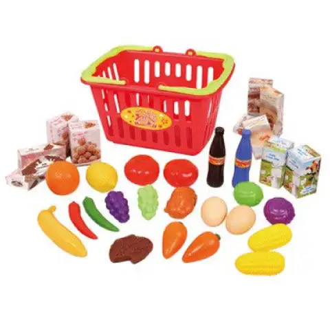 Vaše dítě může nyní otevřít vlastní malý supermarket nebo trh ve svém pokoji s pomocí potravinové sady. Sada obsahuje také odolný nákupní košík, do kterého může dítě umístit zakoupené produkty, čímž se hra stává úplnou. Různé zeleniny, ovoce, balené potraviny a nápoje byly navrženy tak, aby co nejvíce připomínaly skutečné, čímž dětem přinášejí velkou radost.
