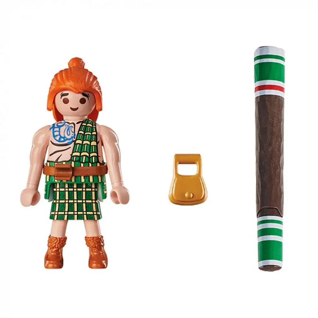 Poznejte figurku Playmobil "Asterix - Mac Olwad", která přináší svět slavných galských dobrodružství vašemu dítěti! Tato čtyřdílná sada oživuje postavu Mac Olwada, kterou poznáme podle ikonického kostkovaného kiltu a oranžových vlasů. Mac Olwad, statečný a silný skotský bojovník, je připraven připojit se k hrdinským činům Asterixe a jeho přátel.