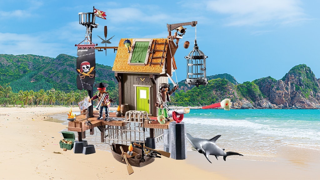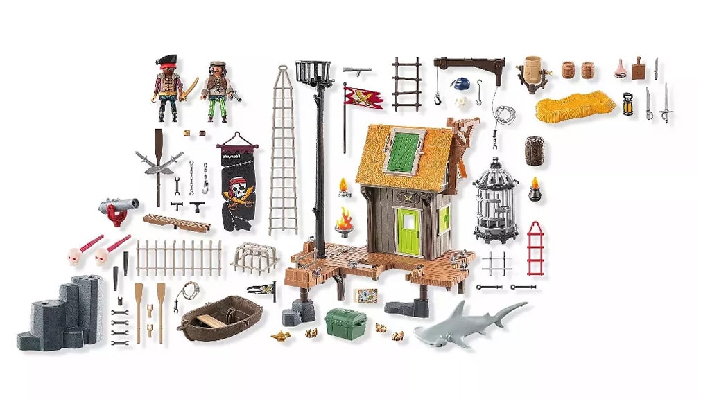 Tato pirátská sada obsahuje přístaviště pro velké lodě, ve kterém se skrývá tajné pirátské vězení. Děti mohou použít padací dveře k uvěznění zajatců, vystřelit lebkový kanón, který střílí lebky svítící ve tmě, a zažít mnoho dalších vzrušujících dobrodružství. Tato sada nabízí skvělou příležitost ke kreativní hře a rozvoji fantazie, zatímco si děti mohou prožít své vlastní pirátské příběhy.