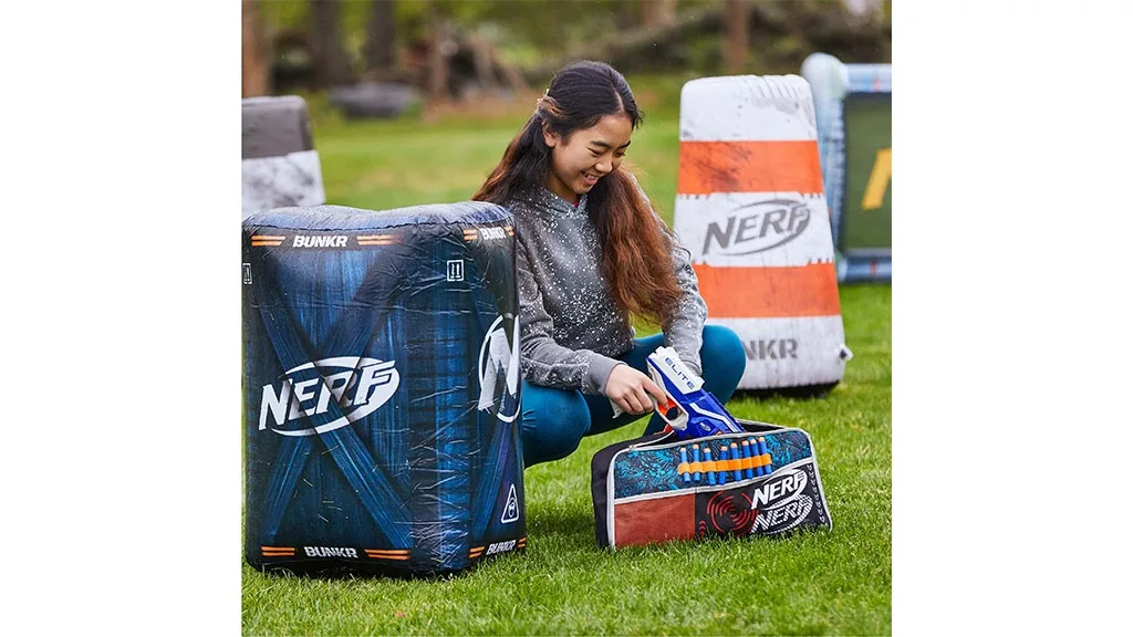 Kolekce NERF BUNKR Battle Zones byla navržena tak, aby zvýšila jakoukoli bitvu s NERF blasterem. Balíček Battle Zones závodů obsahuje čtyři nafukovací barikády, za kterými se děti mohou v bitvě schovat. NERF BUNKR Battle Fort je nafukovací štít, za který se mohou schovat dvě děti. Pokud nafukovací hračky nejsou stylem vašich dětí, mohou se podívat na doplňky BUNKR, ve kterých mohou skladovat všechny své blastery, včetně Combat Carrier Case, Battle On batohu a Stow & Go Clash Cache.