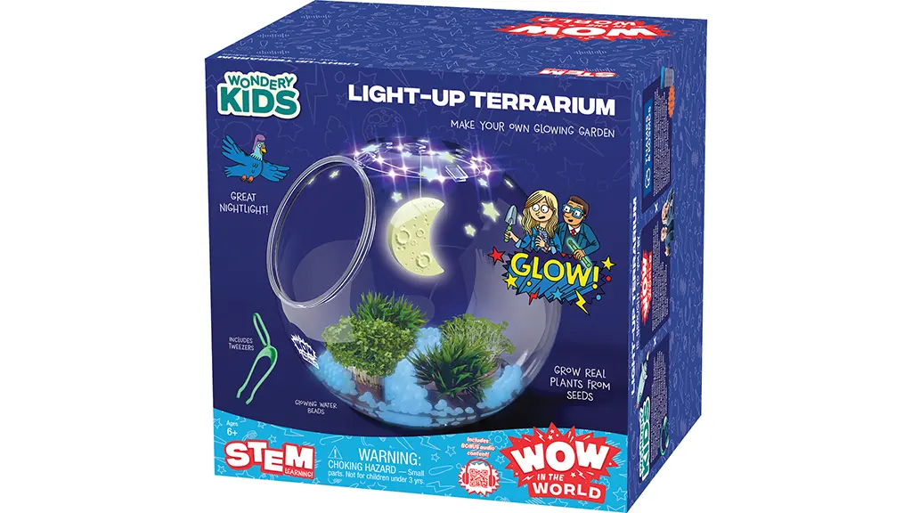 Sbírka je dostupná na následujících odkazech a u vybraných prodejců, jako je například Barnes & Noble. Přejeme příjemnou zábavu — ve jménu vědy!Sada obsahuje semena řeřichy, "nádoby na růst", "hvězdy svítící ve tmě", svítící plastové kamínky, UV LED světelný řetěz a umělé rostliny. Mladí botanici mohou sledovat experimentální průvodce, aby si postavili terárium a učili se o rostlinách. Tato sada je nejen zábavná, ale i vzdělávací, protože děti se mohou seznámit s procesem růstu rostlin, fotosyntézou a vlivy prostředí. Svítící prvky dodávají teráriu zvláštní atmosféru, takže si děti mohou užívat pohled na svou malou zahrádku i v noci.