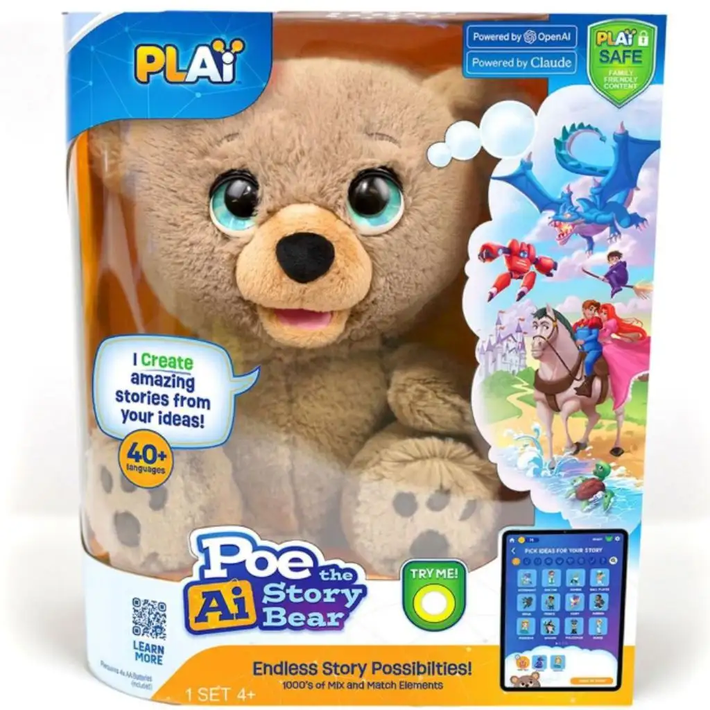 Poe, vyprávěcí AI Medvídek, je speciální plyšák, který posouvá večerní pohádky na zcela novou úroveň! Tento kouzelný medvídek je vybaven umělou inteligencí, takže dokáže vytvářet vlastní, jedinečné příběhy na základě nápadů vašeho dítěte. Ať už jde o královské hrady, draky, superhrdiny nebo jiné kouzelné příběhy, Poe vždy připraví pohádku, která odpovídá představám malých posluchačů. Mluví více než 40 jazyky, včetně češtiny, takže vaše dítě si může vychutnat vyprávění ve svém mateřském jazyce. Poeova AI technologie je bezpečná, přátelská k dětem a poskytuje neustále kontrolovaný obsah, aby každá pohádka byla zábavná a věkově přiměřená. K použití je potřeba chytré zařízení (není součástí balení).