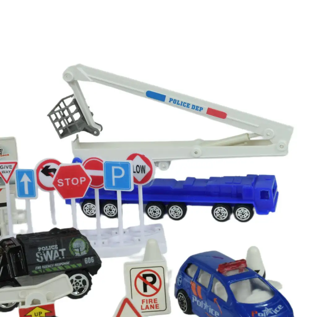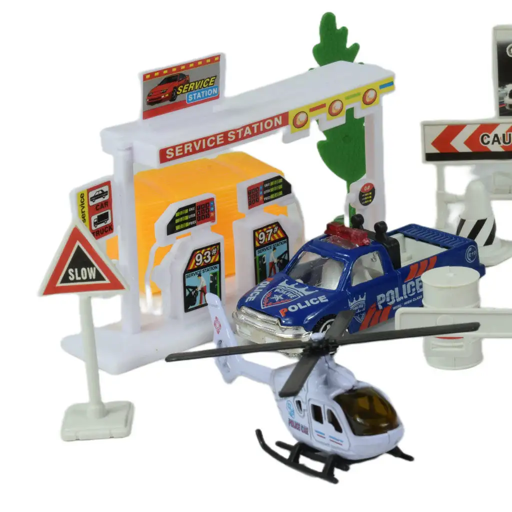 V sadě najdete vrtulník, kterým může sledovat zločince během letu, auta, se kterými může hrát vzrušující honičky, jeřábové vozy, které mu umožní simulovat jakoukoli situaci, a dokonce i ploty pro uzavření a dopravní značky, které mu umožní vytvořit zcela autentické policejní scény pro hru. Tyto doplňky nejen podporují kreativitu, ale také zvyšují zážitek z hry vašeho dítěte díky jejich realističnosti.