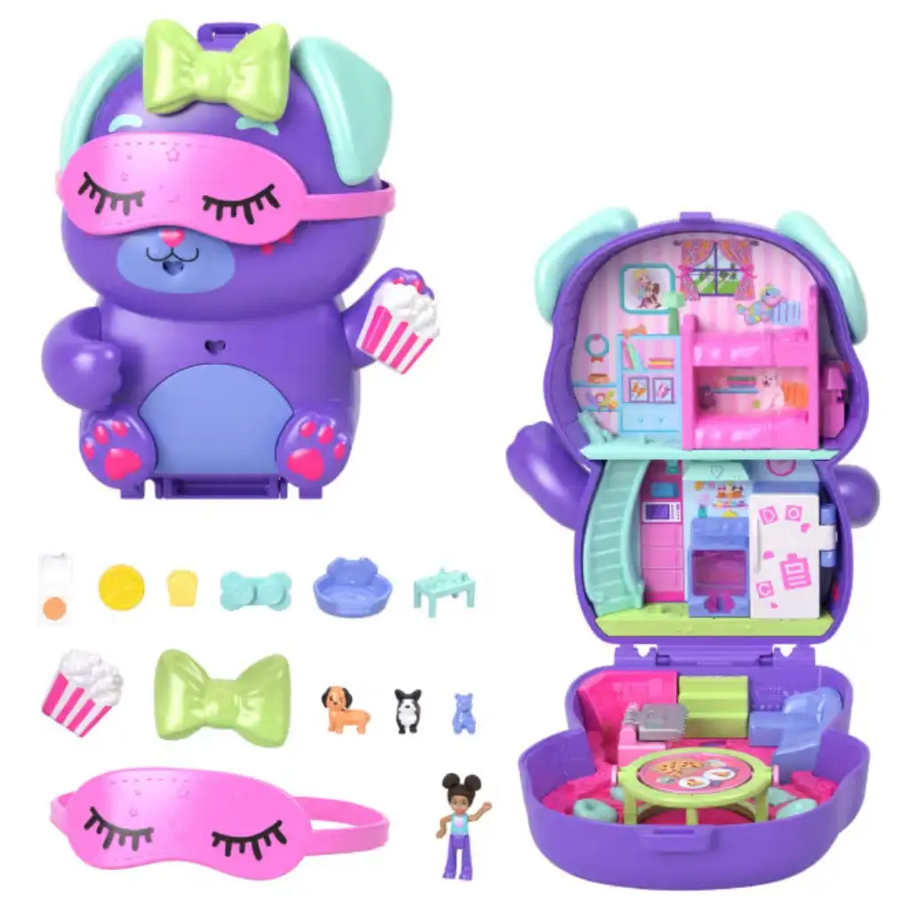 Uvnitř setu se nachází útulný interiér bytu s ložnicí, kuchyní a obývacím pokojem, kde Polly a její mazlíčci mohou trávit čas společně. Balíček obsahuje mini panenku, několik psích figurek a řadu tematických doplňků, které hru ještě více obohacují.